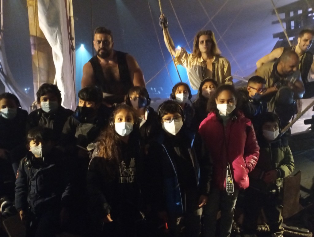 Nos embarcamos con los marineros para descubrir un mundo desconocido, encontramos lugares estupendos y personas que vivían de una forma increíblemente diferente. Nos sorprendió la pasión y la tenacidad de los tripulantes con la que hicieron frente a los peligros que encontraban en el océano y en la tierra: el deseo que los movía era más grande que las dificultades. La extraordinaria simulación de la tempestad nos dejó con la boca abierta, nos parecía estar allí con ellos.
